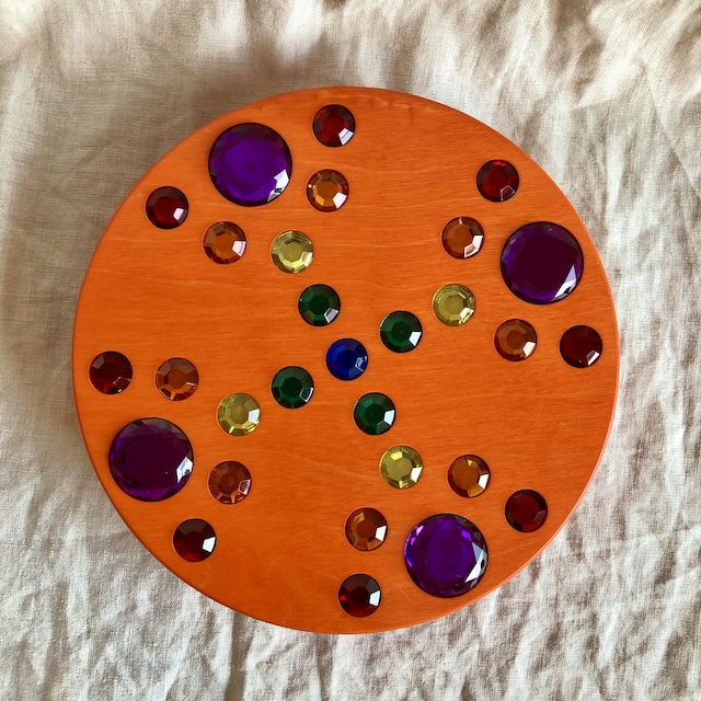 キラキラ光るジュエルが埋め込まれた大きなコマ。 小さな子どもが体全体を使って回すのに適した大きさです。シリーズではジュエルの模様は異なっていて回転の速さによっても違った美しい色と模様の世界が楽しめます。 【商品情報】 サイズ Φ23㎝ メーカー Dusyma(デュシマ)社 対象年齢 1才〜