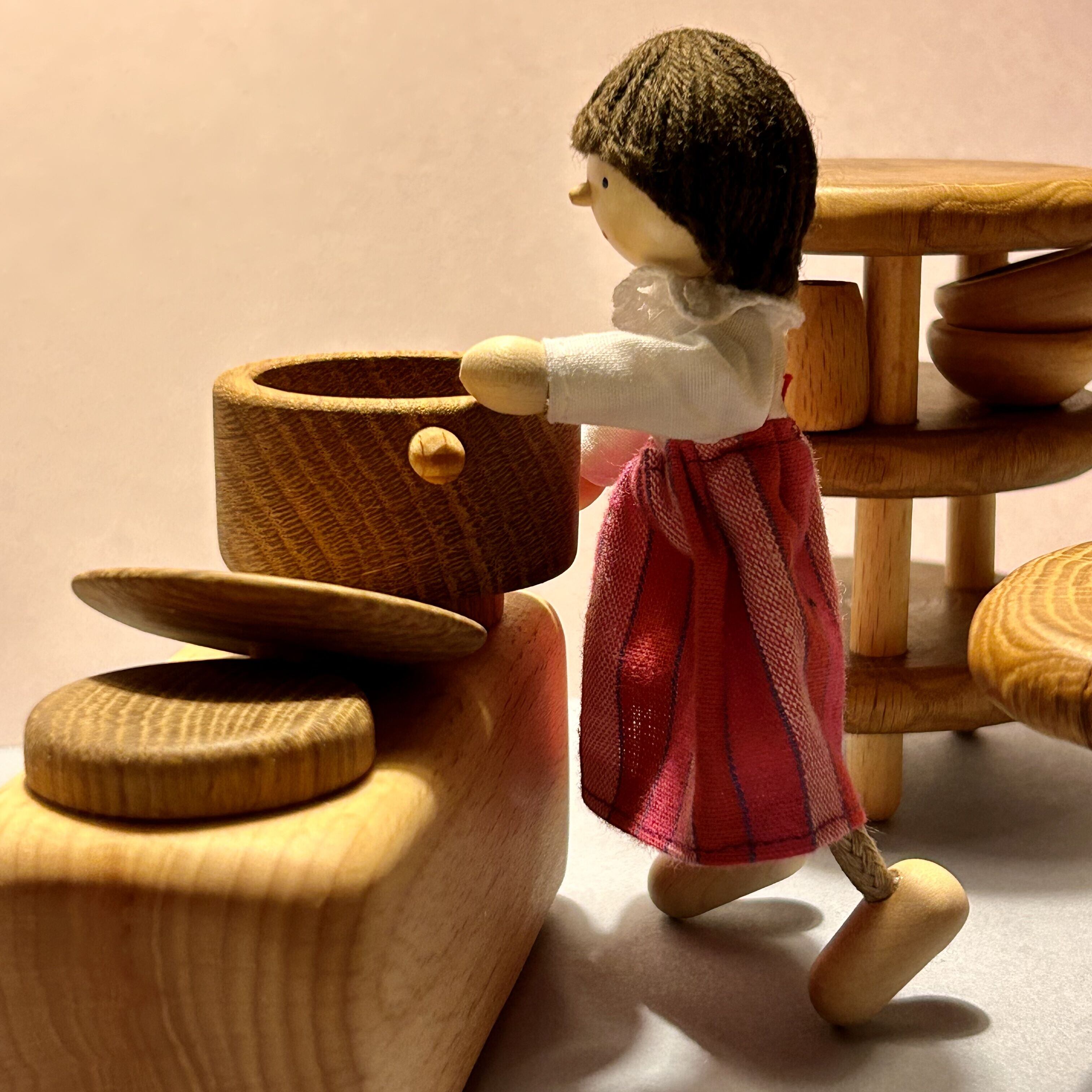 ・天然木の風合いと丸みをおびたシンプルなデザインは、素材の温かみを感じるだけでなく、あそびの世界に魔法をかけたように可能性を開きます。