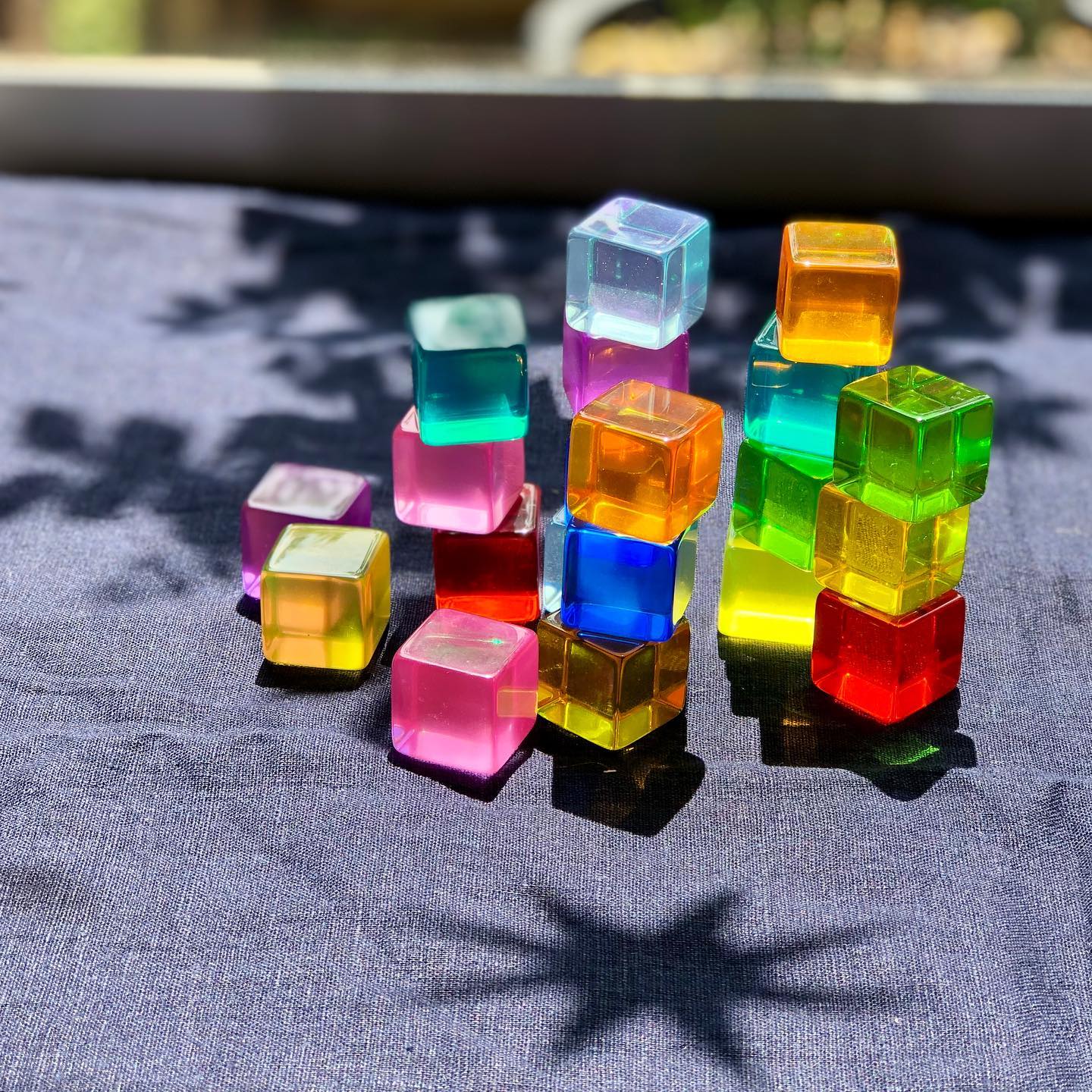 ・ルーセントキューブは2.5㎝の立方体です。5㎝基尺の他の積木とも相性が良く、組み合わせて遊ぶのもおすすです。