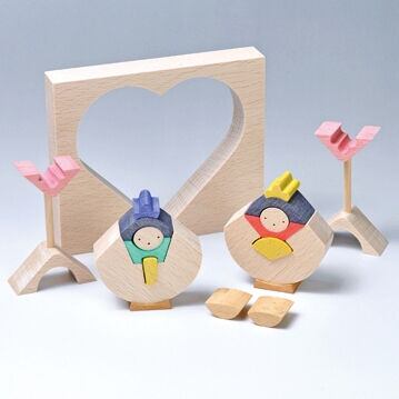 ・ハートは相思相愛のシンボルです。そのハートの形の中に、男女雛が仲良く収られています。