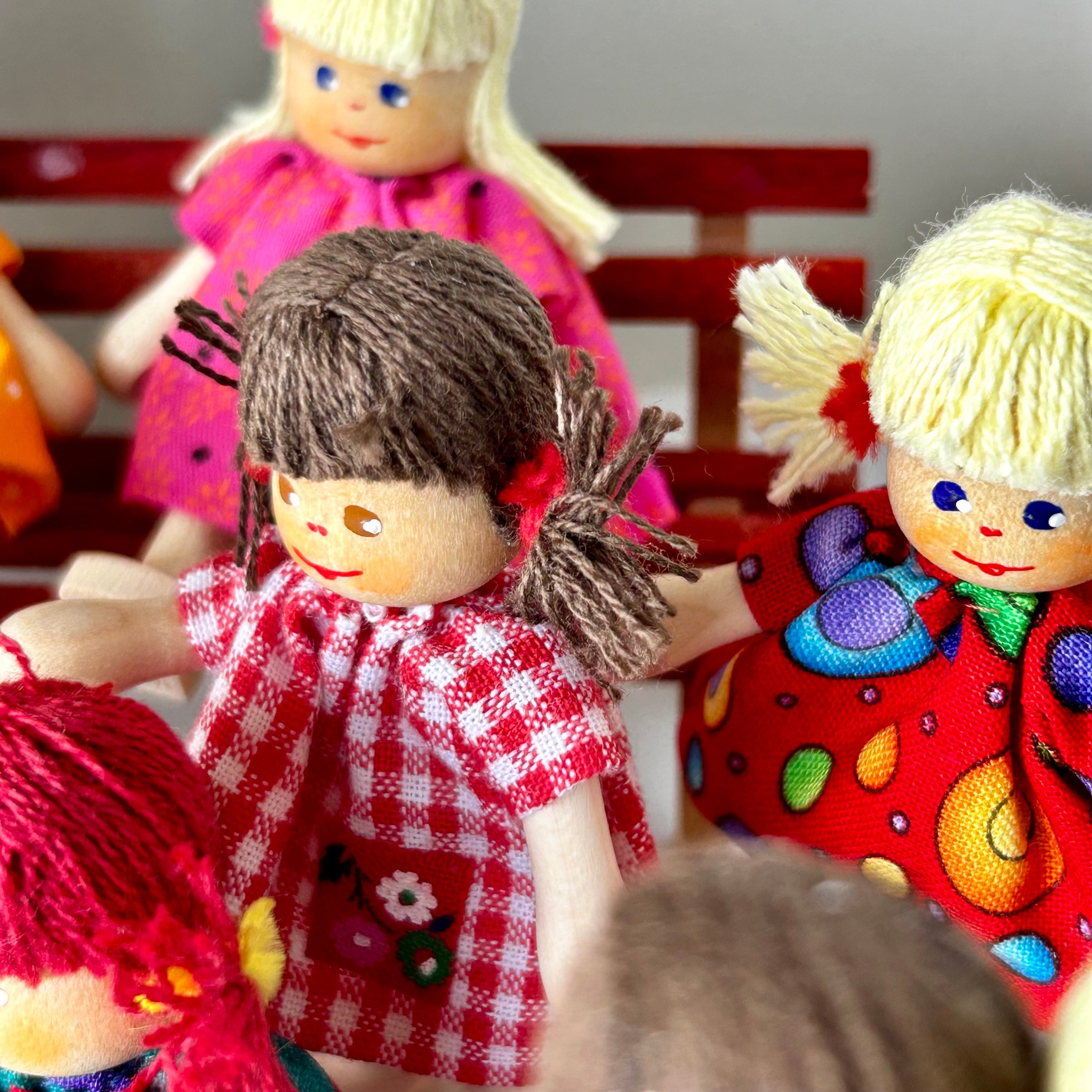 かつて一人の女性マイスターが作っていた木製の人形作りを復活させつくり続けているドイツ・エルツ山地グリュンハイニヒェンの工房。丁寧に目や口を描き入れ、髪の毛をつけ、手作りの服を着た人形は、一体一体に個性があり愛らしく、ファンも多くいます。