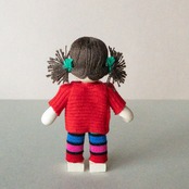 ・この人形の大きな特徴は、手足がゴムでつないであるので、自由に動かして遊ぶことができること。立ってみたり、座ってみたり、さらに人形に表情が生れます。