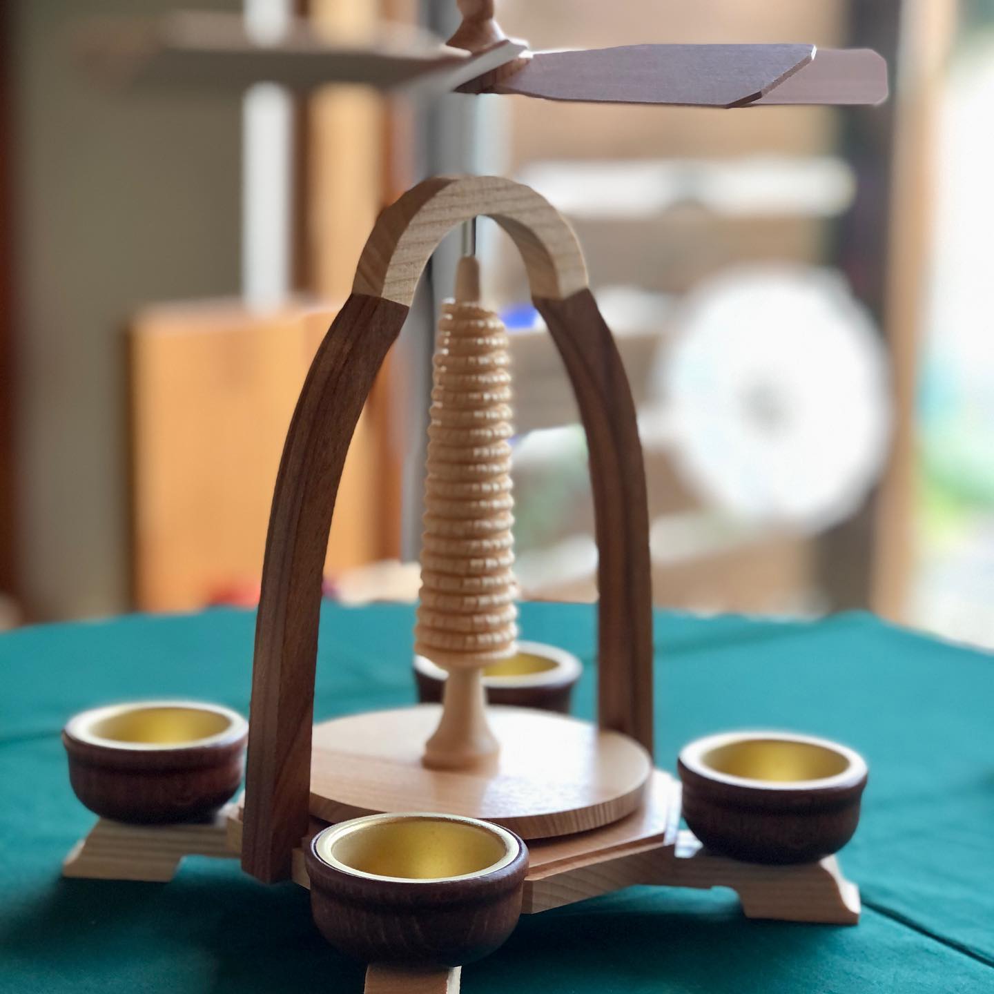 ドイツ・ザイフェンのクリスマスに登場するクリスマスピラミッドは、ロウソクの上昇気流によってメリーゴーランドのように周るクリスマス装飾です。その動きは、じっと見ていると何とも温かい気持ちになります。