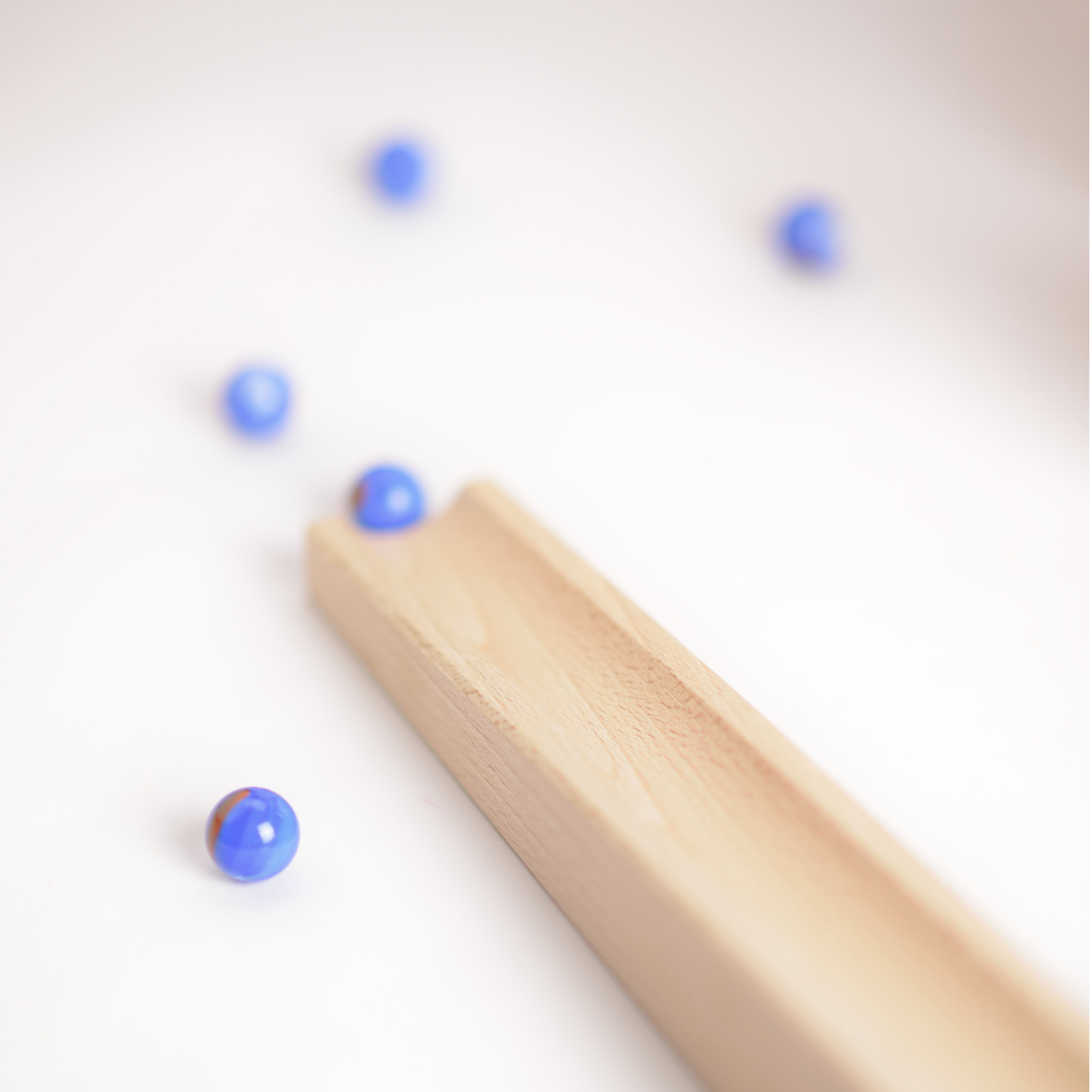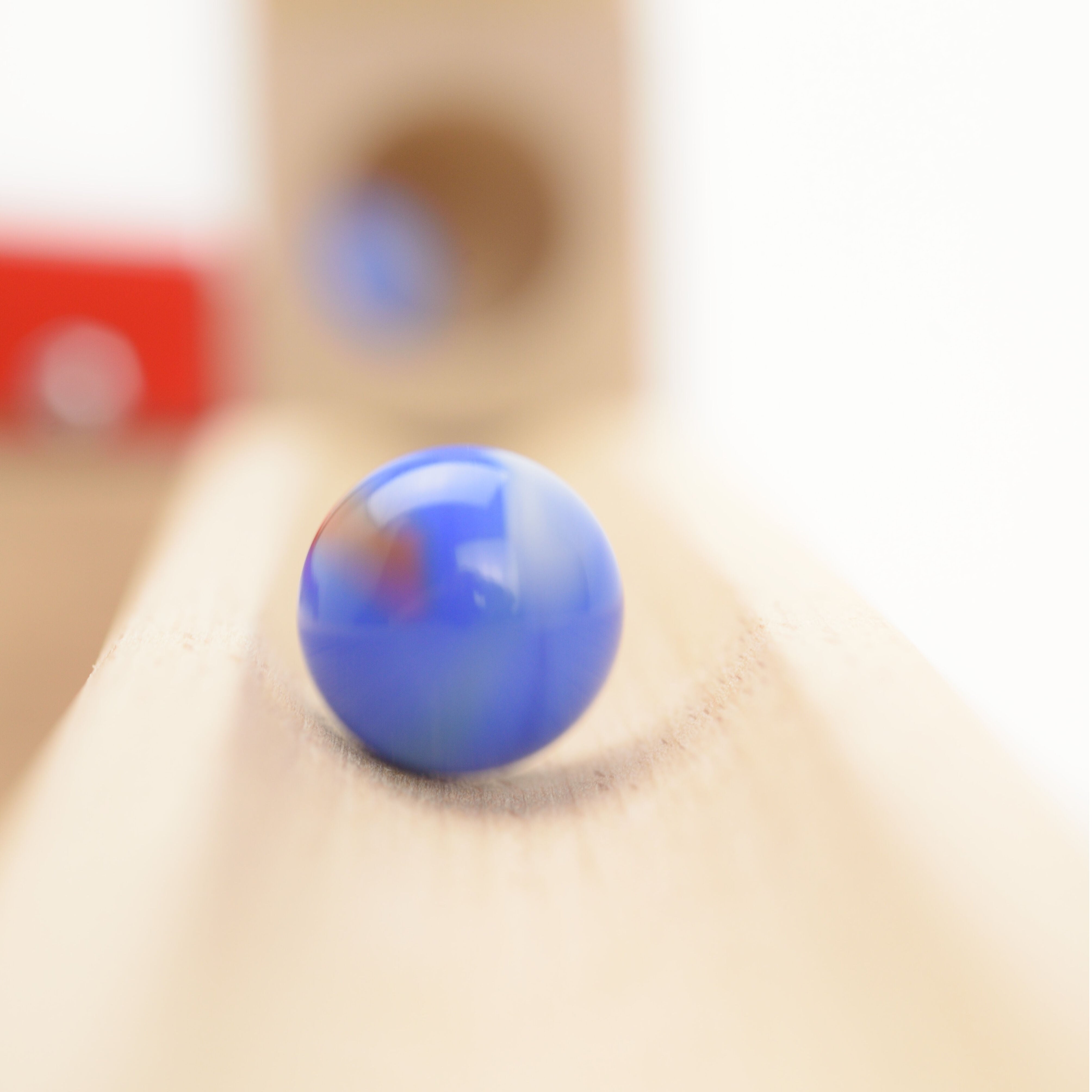・組立てクーゲルーバーンは、ハバ社を代表するロングセラーです。積木の基尺は4㎝で、積木の延長でつながる遊びです。玉の勢いで崩れてしまわないように気をつけたり、工夫を凝らせて自分で作品を作り上げられるのが魅力です。