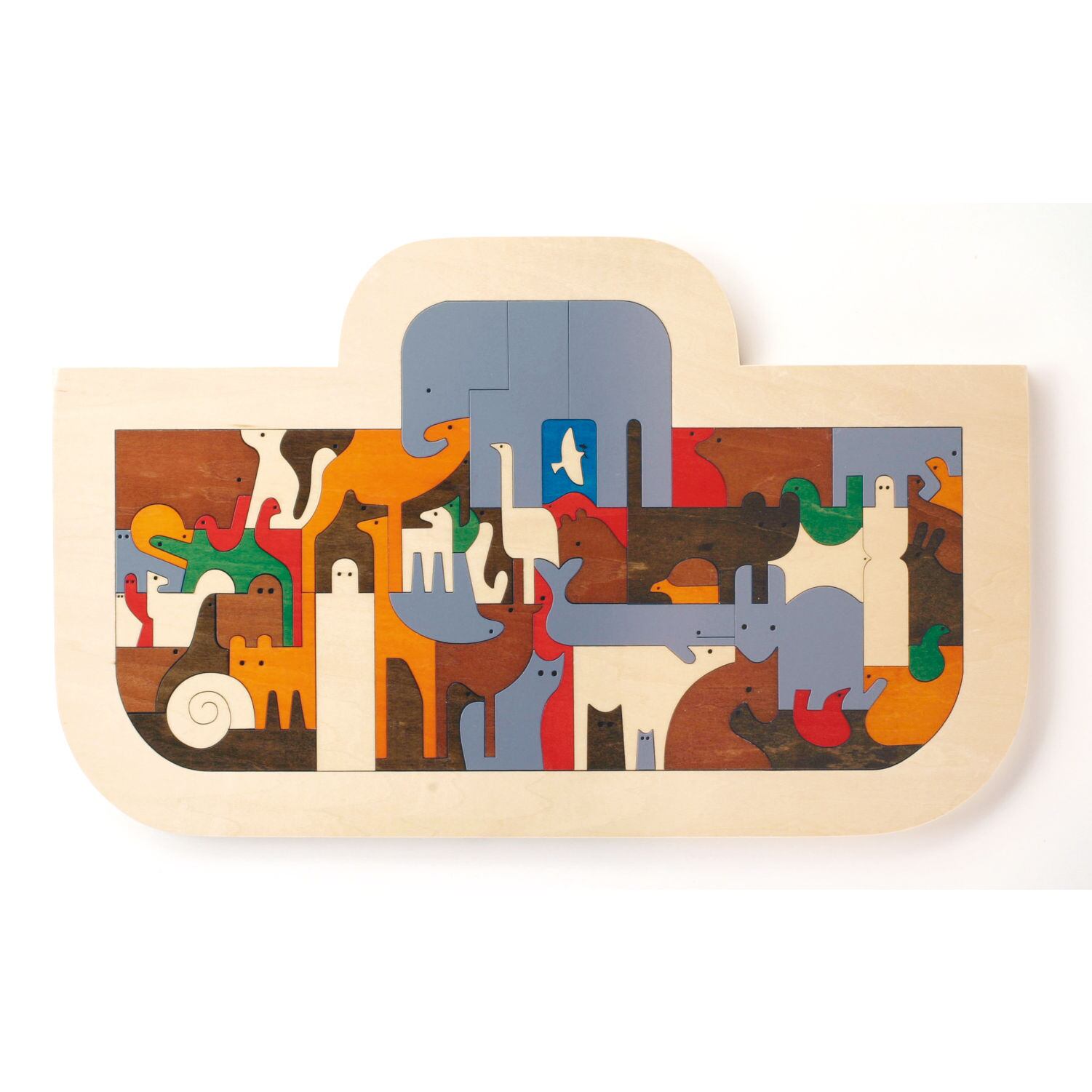ジョージラック夫妻が自身の子どものために作り始めたパズル。「幼児があそぶ単純なものには原色を、年長児向けにはリアルな色を」「層になったパズルからは順番を学び想像力を駆使、まるでかくれんぼを楽しむように」・・・と、より多くの子どもに楽しんでほしいという願いがいっぱい詰まっています。今ではシンプルなものから大人でも悩ましいものまで様々です。また、室内を彩るインテリアとしても高い評価を受けています。