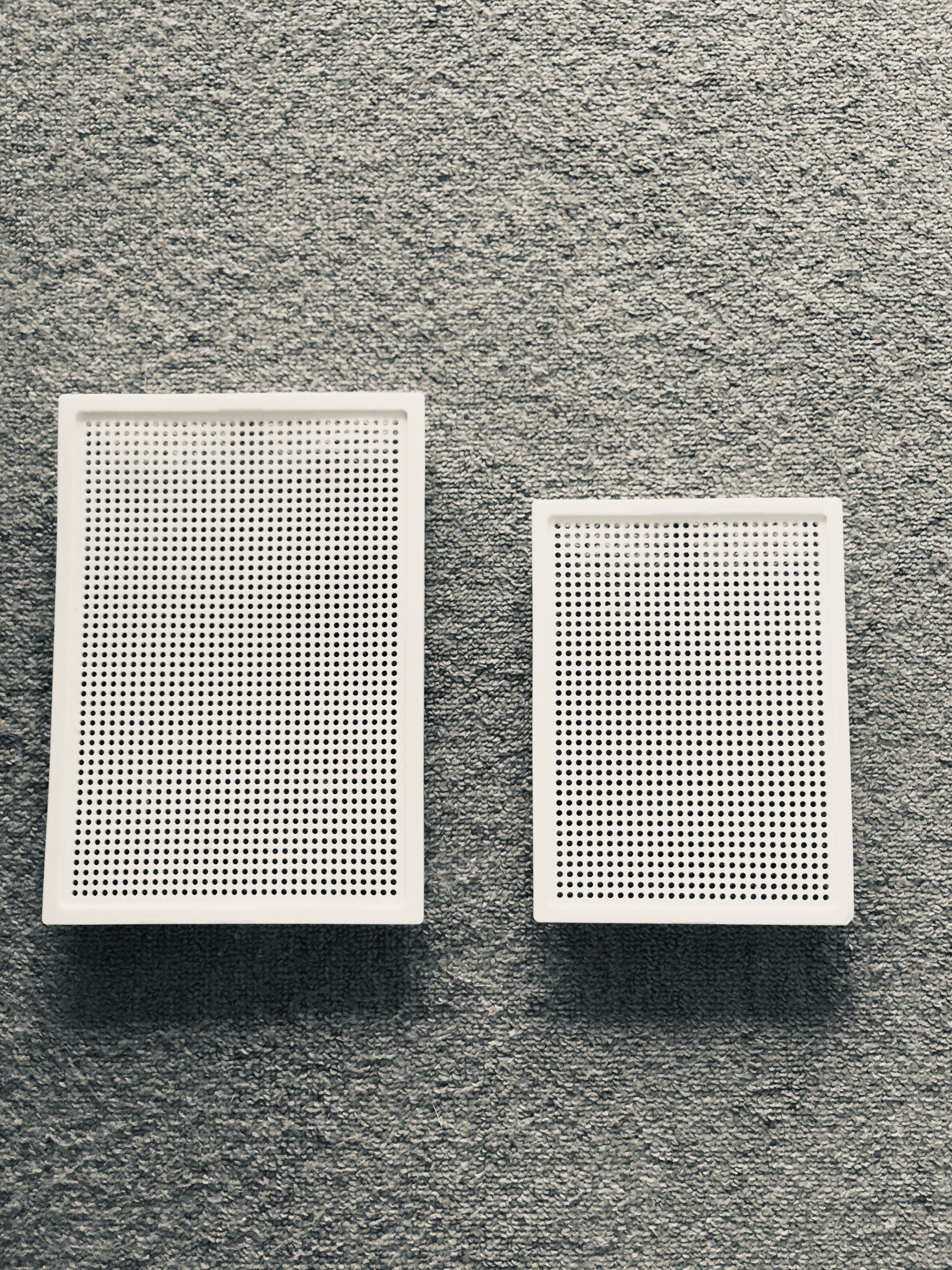 ・色とりどりのステッキを穴に差し込んで絵模様を作る遊びです。年齢やその子どもの遊び方は変化していくので、必要なステッキの大きさや使う量、ボードのサイズを調整してあげて下さい。