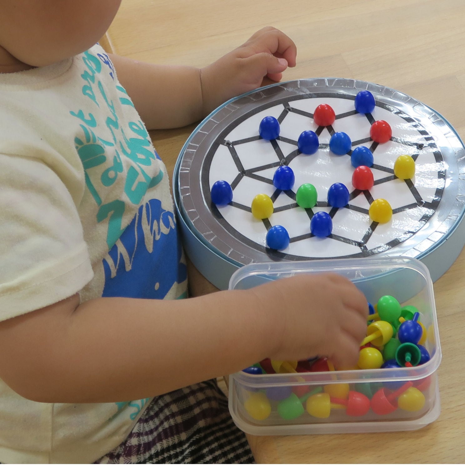 ・塗った後は、余白を切り落とし、ラミネートやブッカーで透明コーティングをすれば保管がしやすく、ひもを付けて天井から吊せば部屋の装飾になります。他のおもちゃと組み合わせると、デザインを更に楽しむあそびにもなります。