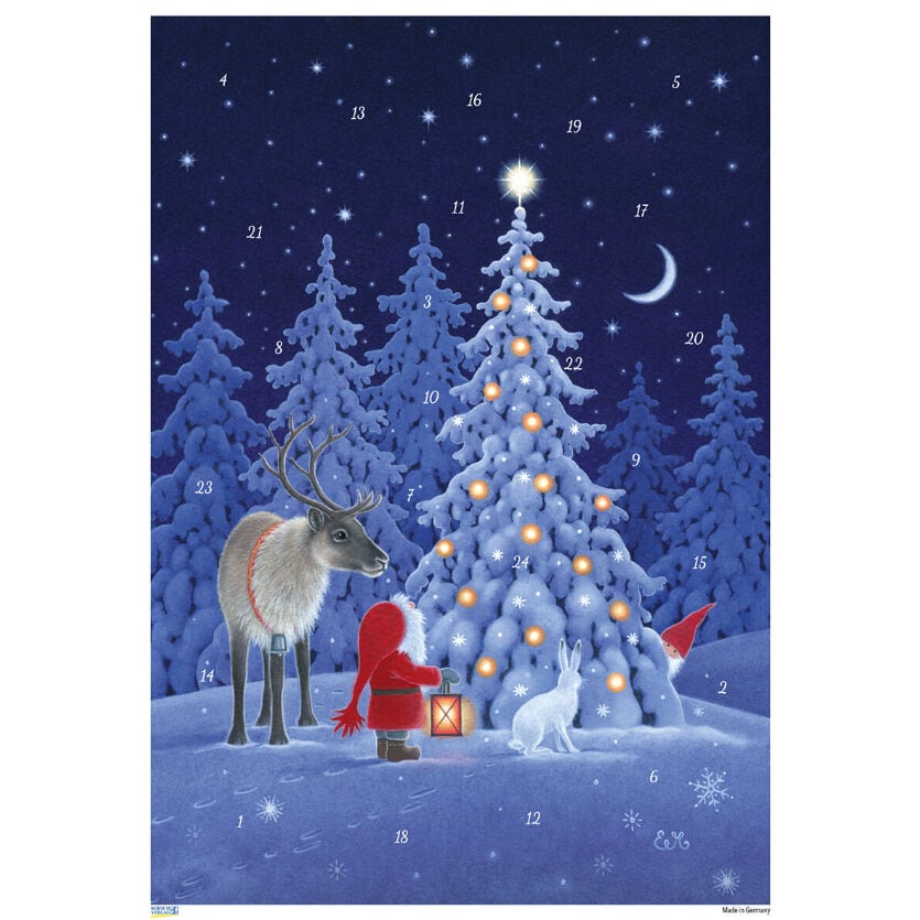 カレンダーには、12月1日から24日までの日付を表している数字が描かれた扉が24個あり、その扉を毎日1枚ずつ開いていきます。扉の中には楽しい絵柄が隠れていて、日々新しい発見があり、開くこと自体も楽しいです。そしてクリスマス・イブの日に全ての扉が開き、その日を迎えます。