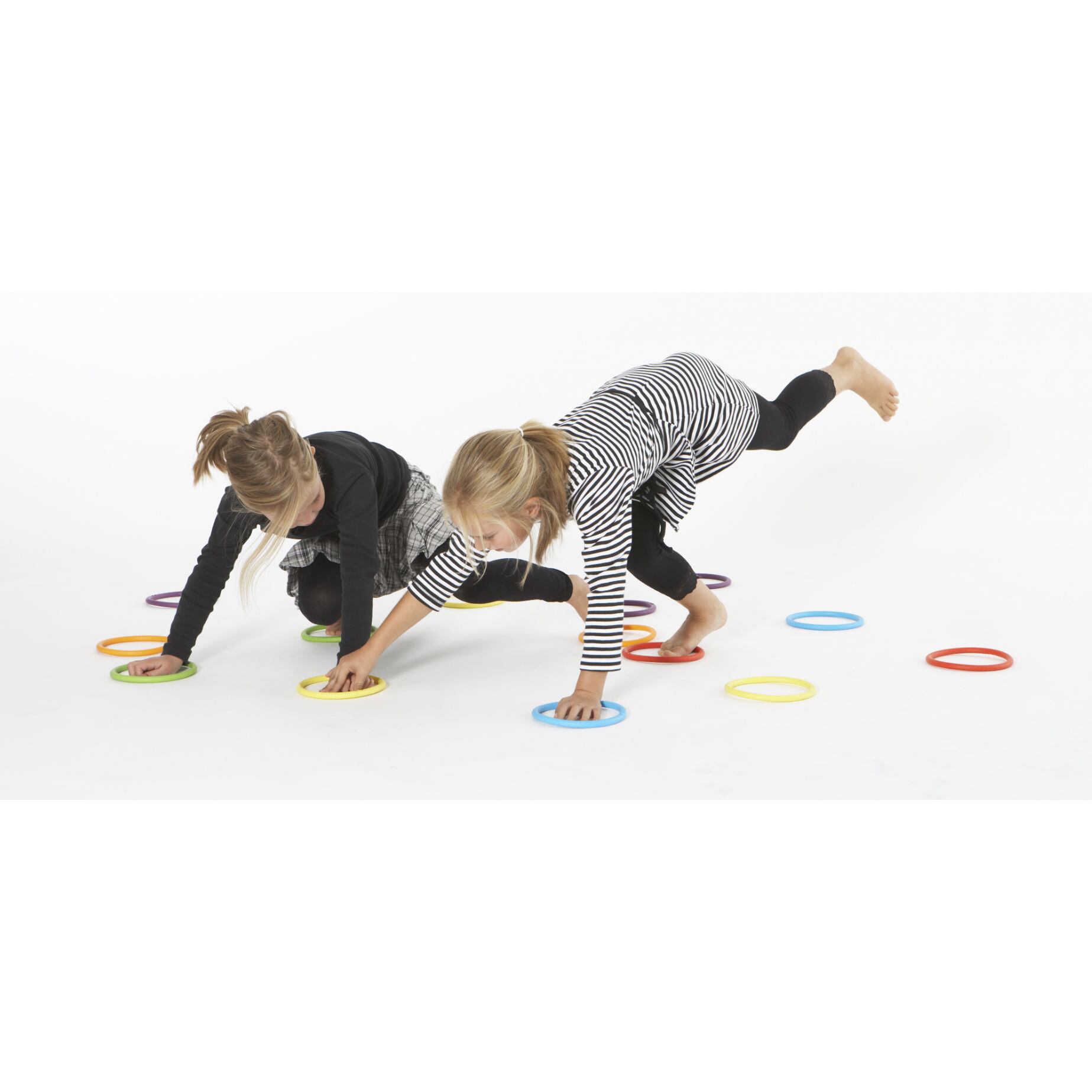 ・頭にのせたり、輪投げのように投げたり、床に置いてその中に手足を入れてみたりと、色々な遊び方が生まれます。