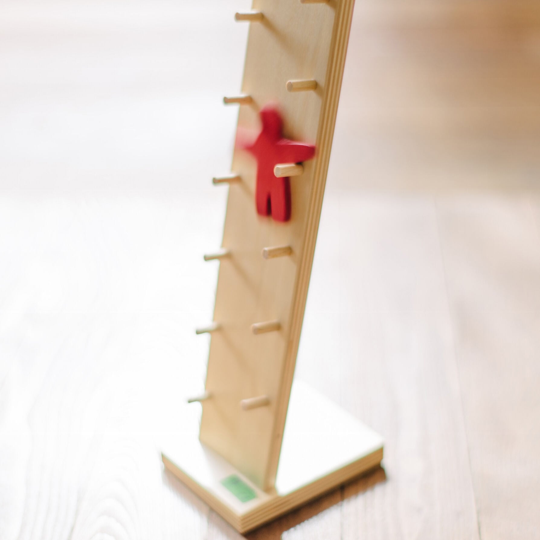 ・カタカタと左右に揺れながら軽快なリズムで、人形が下まで落ちていきます。
