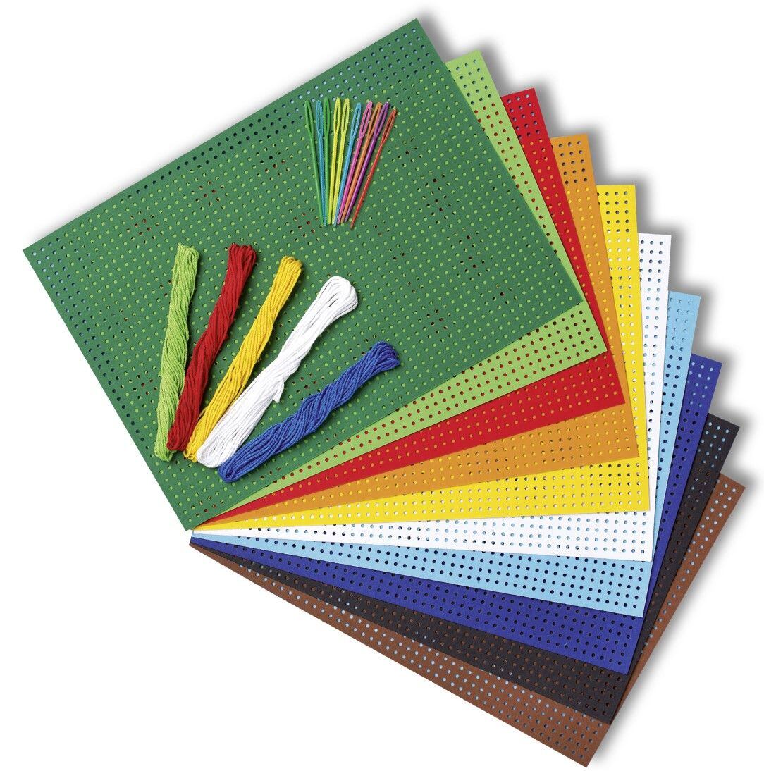 ・刺しゅう遊びのためのセットです。紙製の穴あきカードとプラスチック製の針、刺しゅう糸が入っています。