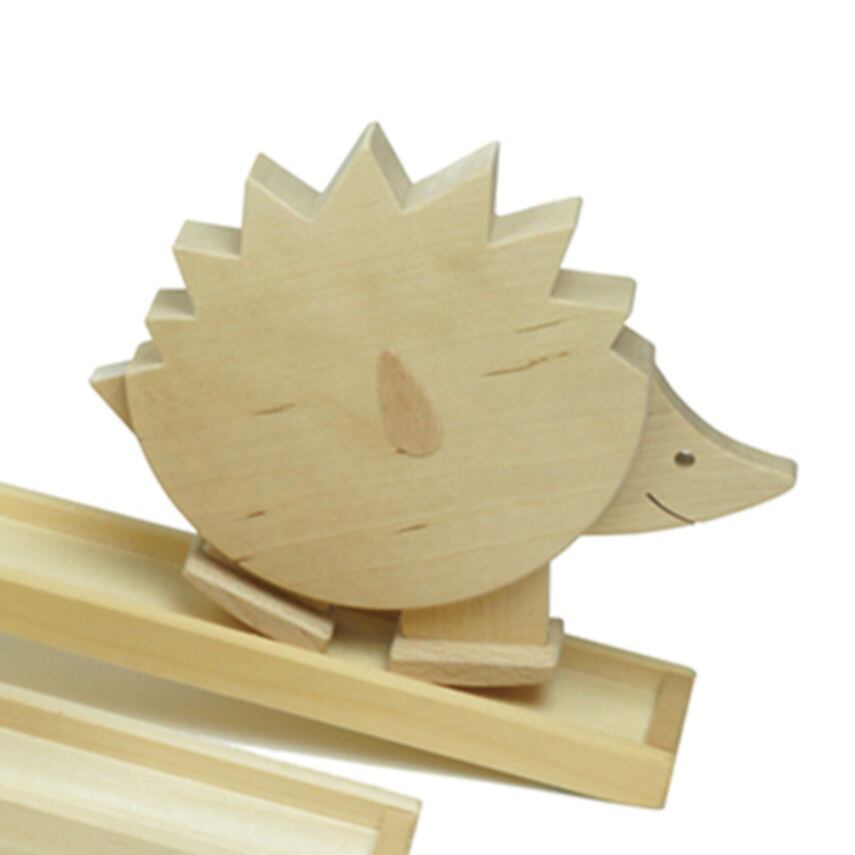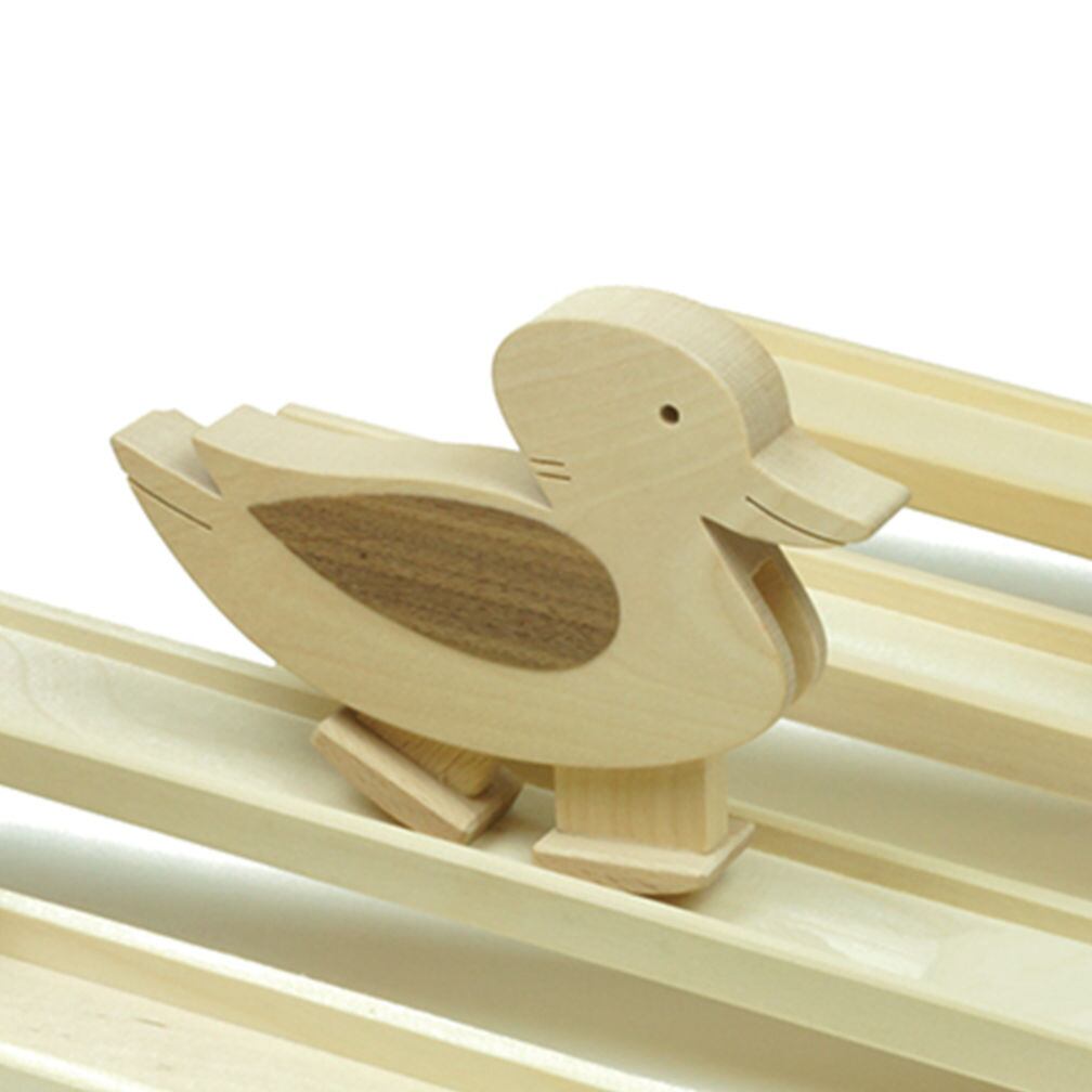 ・コトッコトッと音をたてながら、リズミカルに体を前後に揺らしてゆっくりと坂を下っていくスロープ人形は、目で耳で楽しめます。乳児さんには、このゆっくりさがとても大切。じっと動きを目で追って楽しみます。