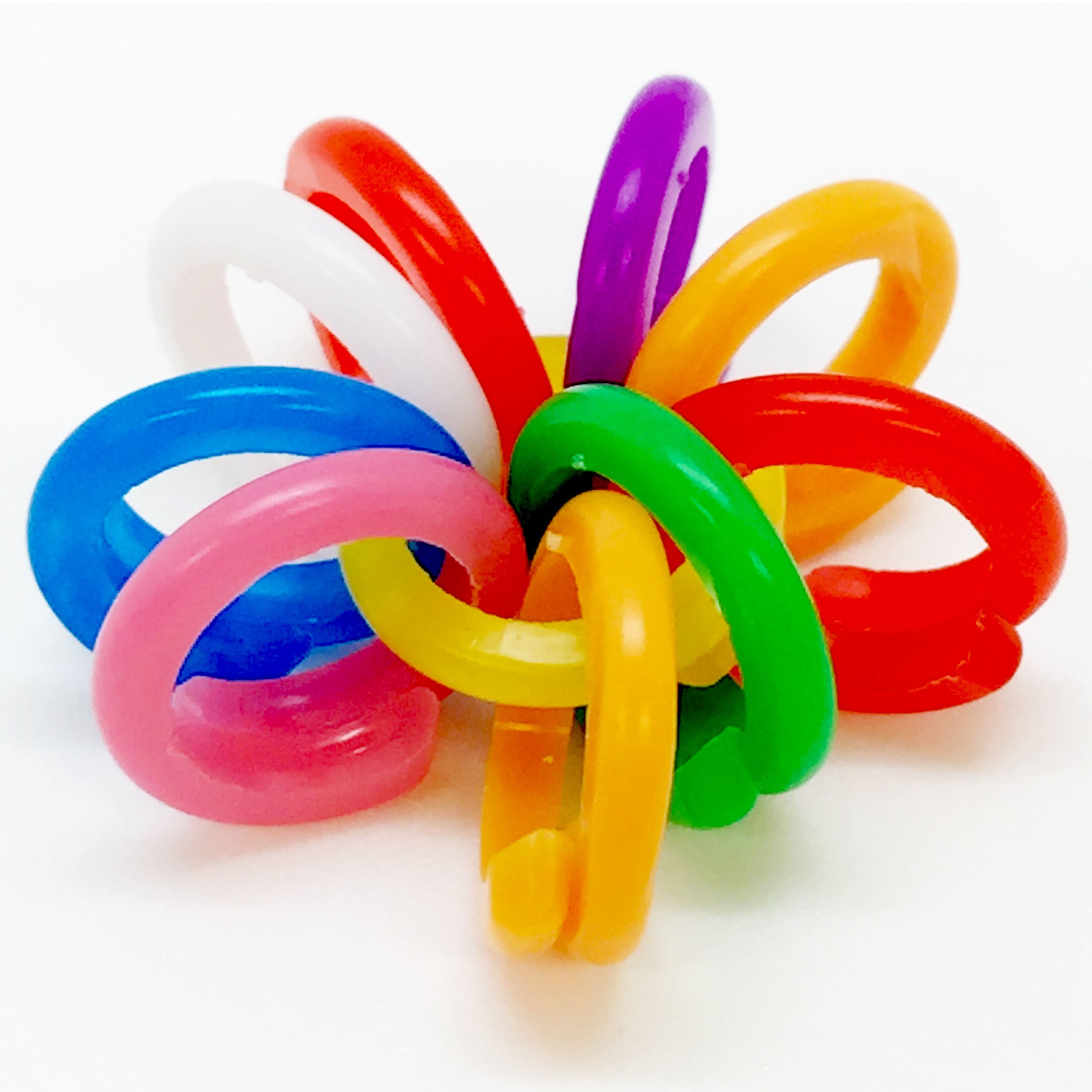 ・ままごとの具材には、これ!というくらいに大活躍してくれるチェーンリング、花はじきは、見立てて遊ぶことのできる素材です。たとえば、花はじきの白は白米、赤ならニンジン、チェーンリングの緑を球体につなげばピーマン、白なら細長くつないでうどんやパスタなど。子ども達の遊びがどんどん膨らみます。