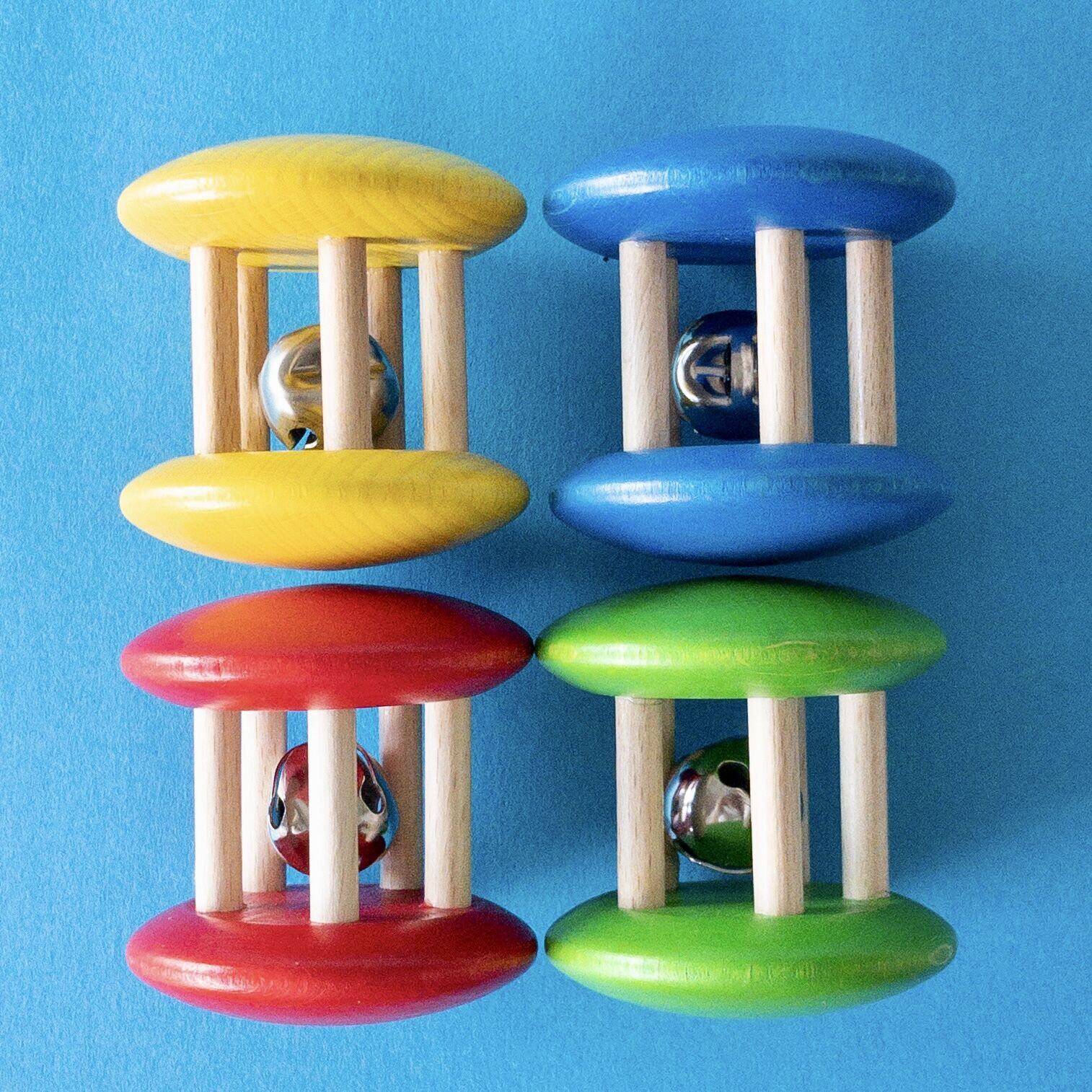 ・木肌の手ざわりやあたたかみ、鈴の音が乳児の繊細な感覚に働きかけてくれるおもちゃです。