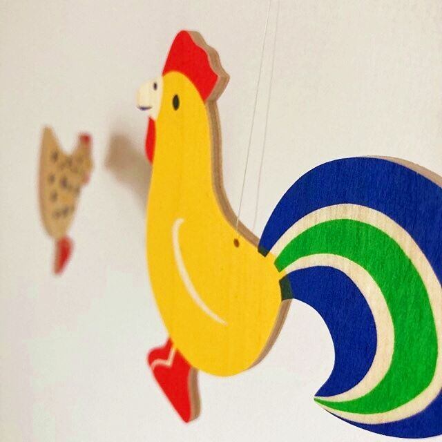 ・モビールは、空気の流れでゆったり動きます。やっと目が見えるようになった乳児の頭の上に下げてあげると、その動きを目で追うようになります。「目で追う」のに、このゆったりさが実はとても大切なのです。