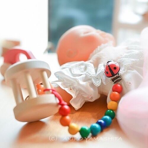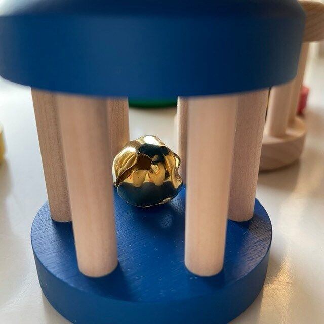 ・ちょうどお座りの頃、自分から手を出して、確かめないと気がすまなくなります。そうした頃にも、自分で手に持って振ったり、転がしたりして、よく遊びます。