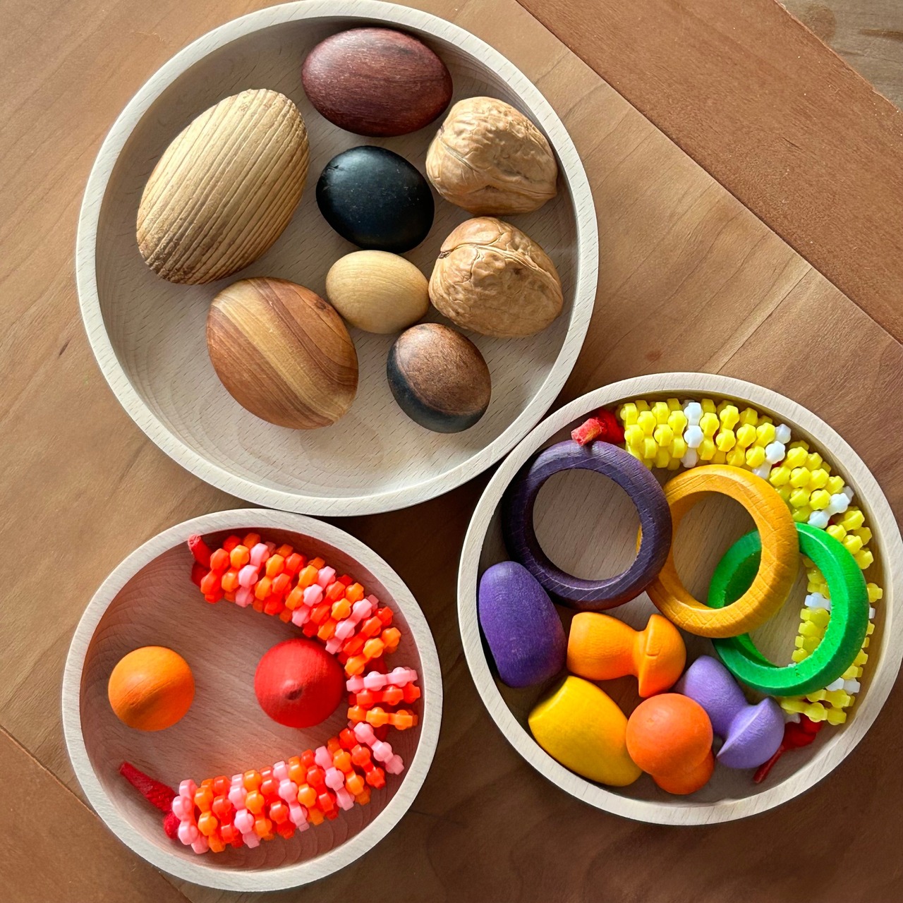 食器使いに慣れてきたら、違うサイズの食器を。ごっこ遊びが本格的になってきたら他の種類の食器や具材を足してあげてください。おままごと遊びはどんどん発展してきます。