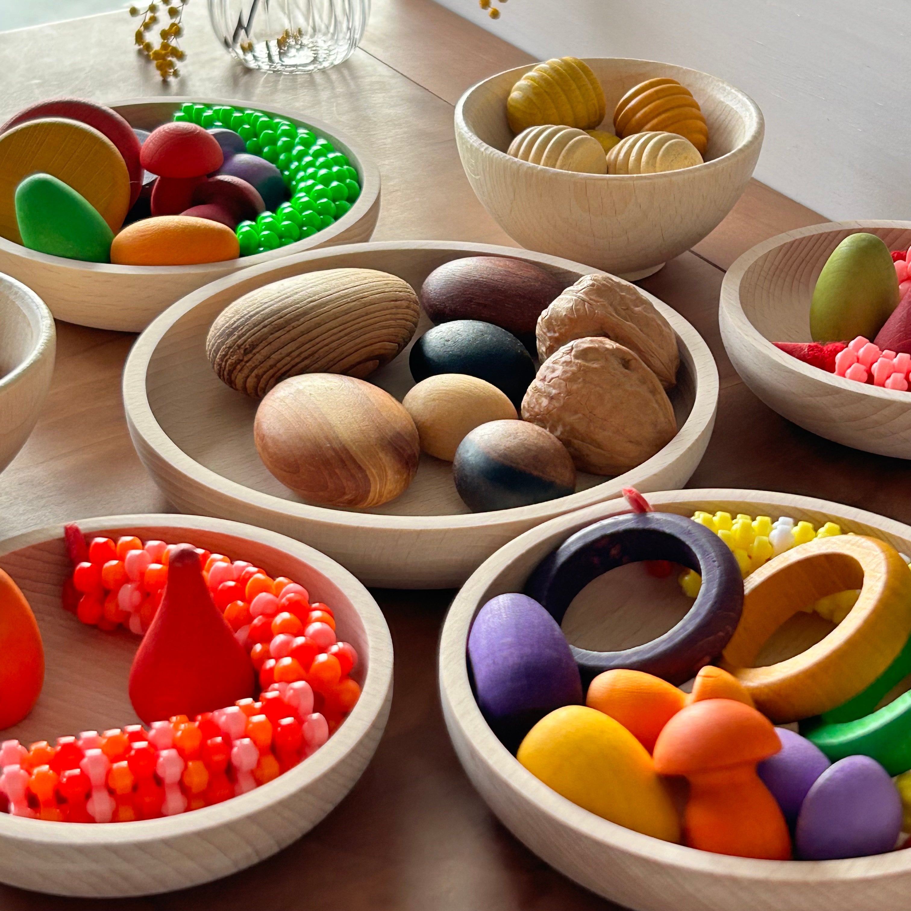 食器使いに慣れてきたら、違うサイズの食器を。ごっこ遊びが本格的になってきたら他の種類の食器や具材を足してあげてください。おままごと遊びはどんどん発展してきます。