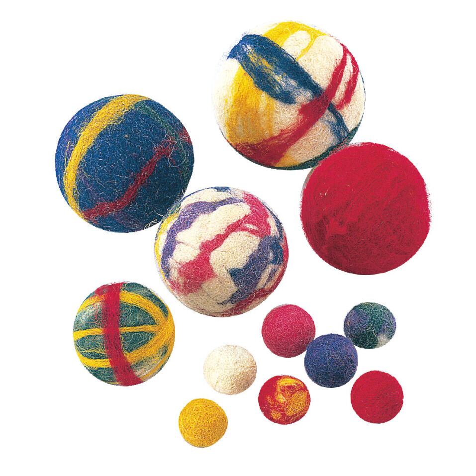 ・羊毛あそびをすぐに楽しめるよう、羊毛遊びの基本の道具の他、幅をひろげる麻布や型抜きも一緒に入っています。