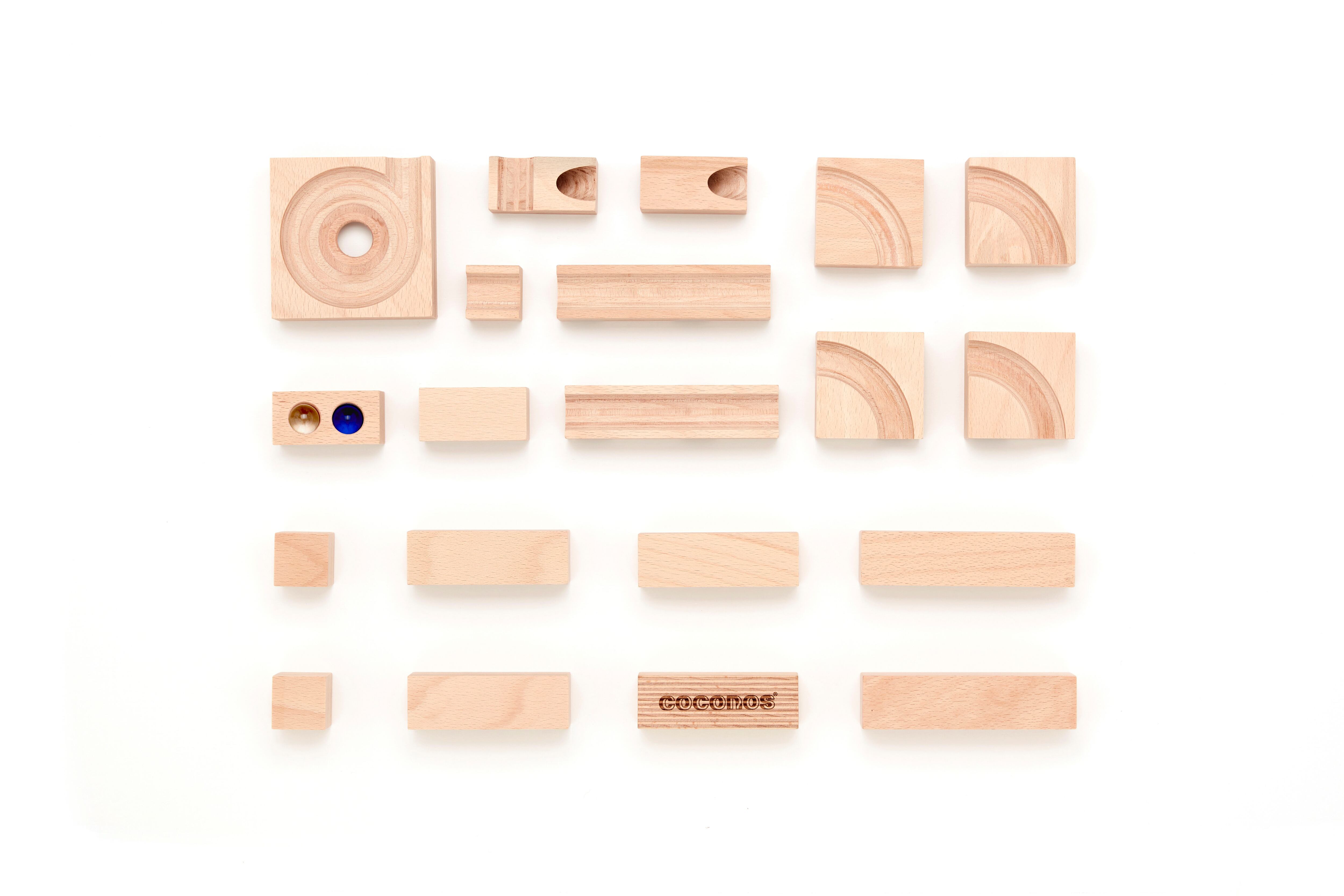 ・coconosは、ビー玉転がし・積み木・パズルを組み合わせたメイドインジャパンの木製玩具です。