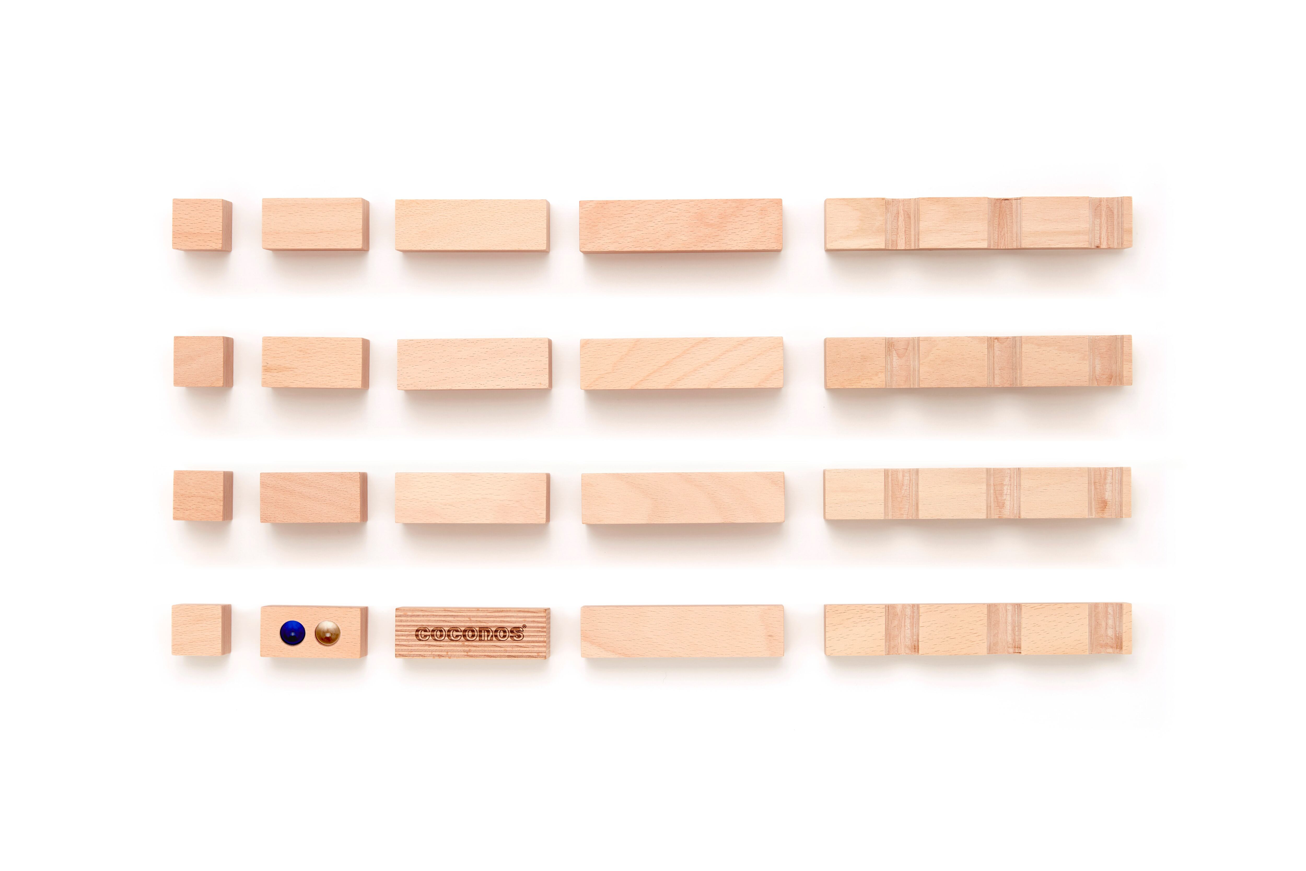・coconosは、ビー玉転がし・積み木・パズルを組み合わせたメイドインジャパンの木製玩具です。